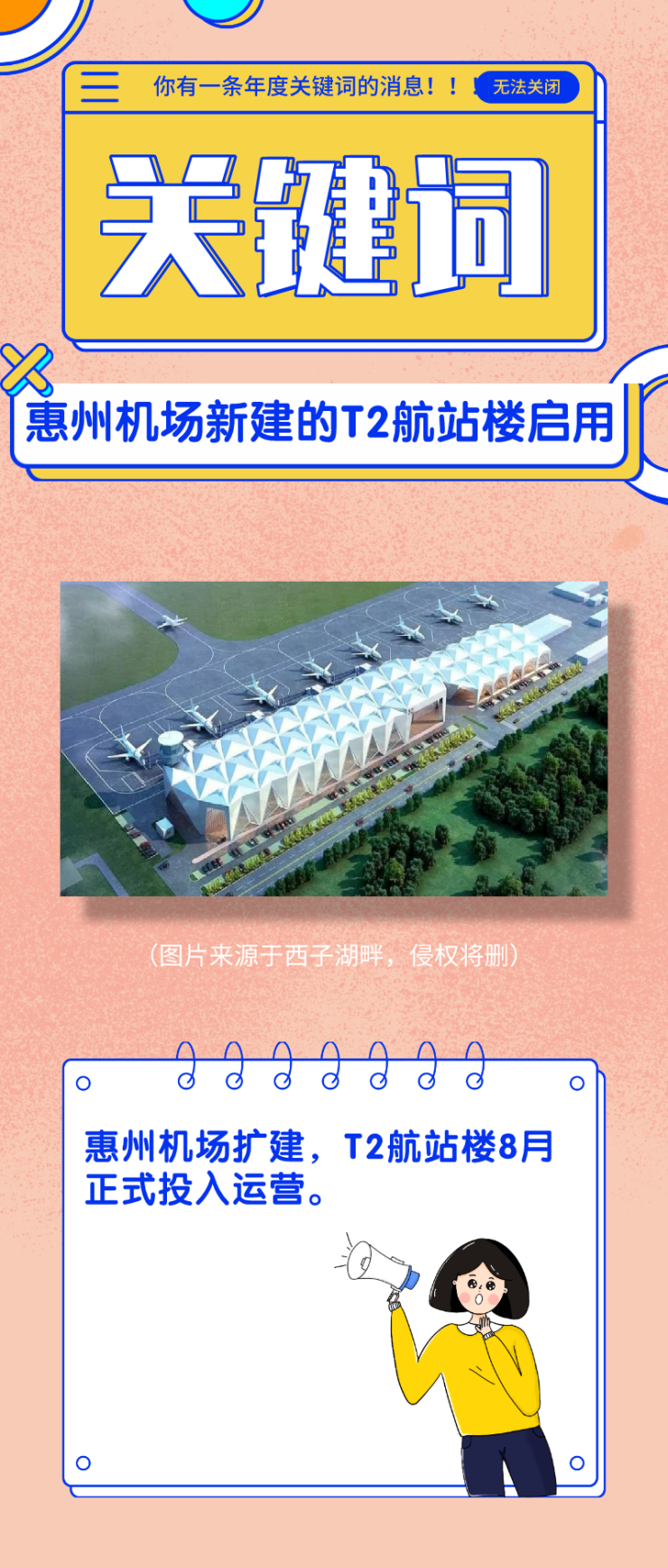 8月28日,惠州机场新建的T2航站楼启用。T2航站楼的启用标志着广东“5+4”骨干机场布局和粤港澳大湾区高级机场群建设又迎来一个新的建设节点。