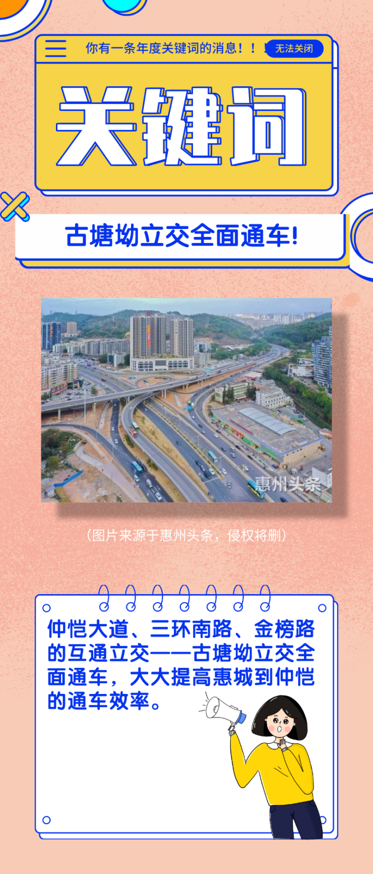 古塘坳立交位于仲恺大道,横跨三环南路且是仲恺通往市区的一个重要的交通枢纽。12月中旬,古塘坳立交全面贯通!惠城与仲恺的来往效率大大提高!