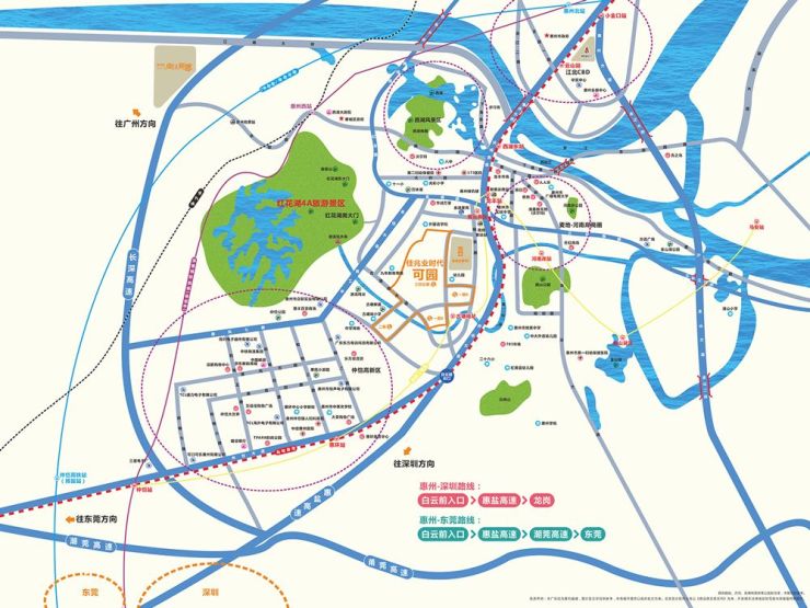 惠深高速白云前出口畅达深圳,莞惠城轨龙丰站直通东莞,仲恺大道、金榜路等主干道贯穿全城,尽享半小时深莞惠生活圈。