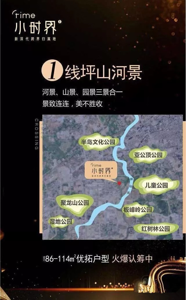 卓洲小时界,临深地铁红盘,一站深圳,直通坪山,万达商圈繁华配套,儿童公园举步即达,北大培文国际教育