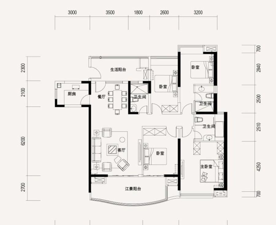 4栋01户型-4室2厅3卫-166.0㎡