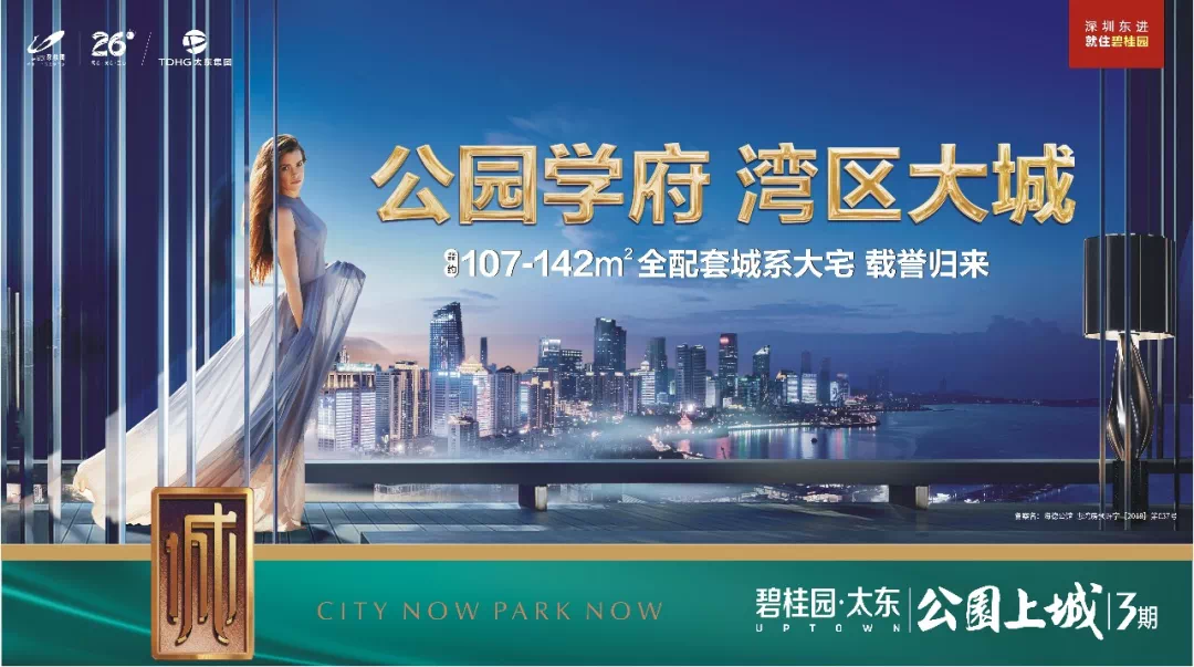 惠州碧桂园太东公园上城位于深圳的东面,毗邻龙岗,坐落于大亚湾行政与商业核心区龙海二路旁,一河两畔至美处。规模打造超百万大城,打造深圳东1号美景人文大城,环绕1.2公里淡澳河畔公园规划布局,涵盖滨水特色商业街、艺术主题公园,社区内规划有一所品牌小学、两所国际幼儿园,并将建立交通中心,每天数辆业主巴士往返深圳与公园上城。